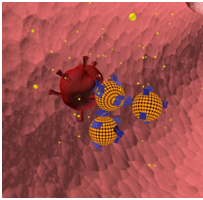 Das linke Bild zeigt die kugelförmigen Vesikel auf denen die Origami-Boxen (blau) angeheftet und bereits geöffnet sind. Im Inneren der Boxen befinden sich Haftanker, die nun die kleineren Vesikel binden können. Das mittlere Bild zeigt, dass sich mit Hilfe der Boxen auch komplexe Netzwerke bilden lassen, um so das Verständnis von Wechselwirkungen zwischen den Zellen zu erleichtern. Im rechten Bild ist die potentielle Anwendung des Systems in der Pharmakotherapie dargestellt.Nachdem dieser erste Meilenstein geschafft war, ging die eigentliche Arbeit los…