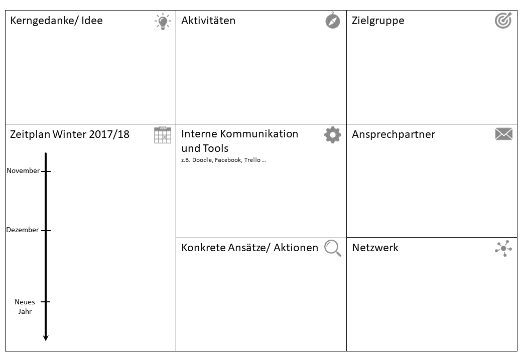 Für die Kommunikation nach Außen sind der Blog und das Team vom Deutschlandstipendium eure ersten Ansprechpartner. Schickt ihnen Ankündigungen von Veranstaltungen und haltet den Blog so oft wie möglich auf dem Laufenden. So können auch externe Personen, wie z.B. Förderer, sehen, was wir in unserer Freizeit tun und wie wir uns engagieren.