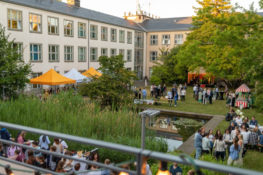 Danach wechselten alle Gäste in den „Dornröschen“-Garten des Barkhausen-Baus, welcher die perfekte Kulisse für diesen besonderen Abend bot. Inmitten grüner Natur haben wir nicht nur gefeiert, sondern auch geplauscht, geschmaust und sogar ein wenig getanzt. Es war schön, alle Beteilgten mal wieder an einem Ort zusammen zu bringen.