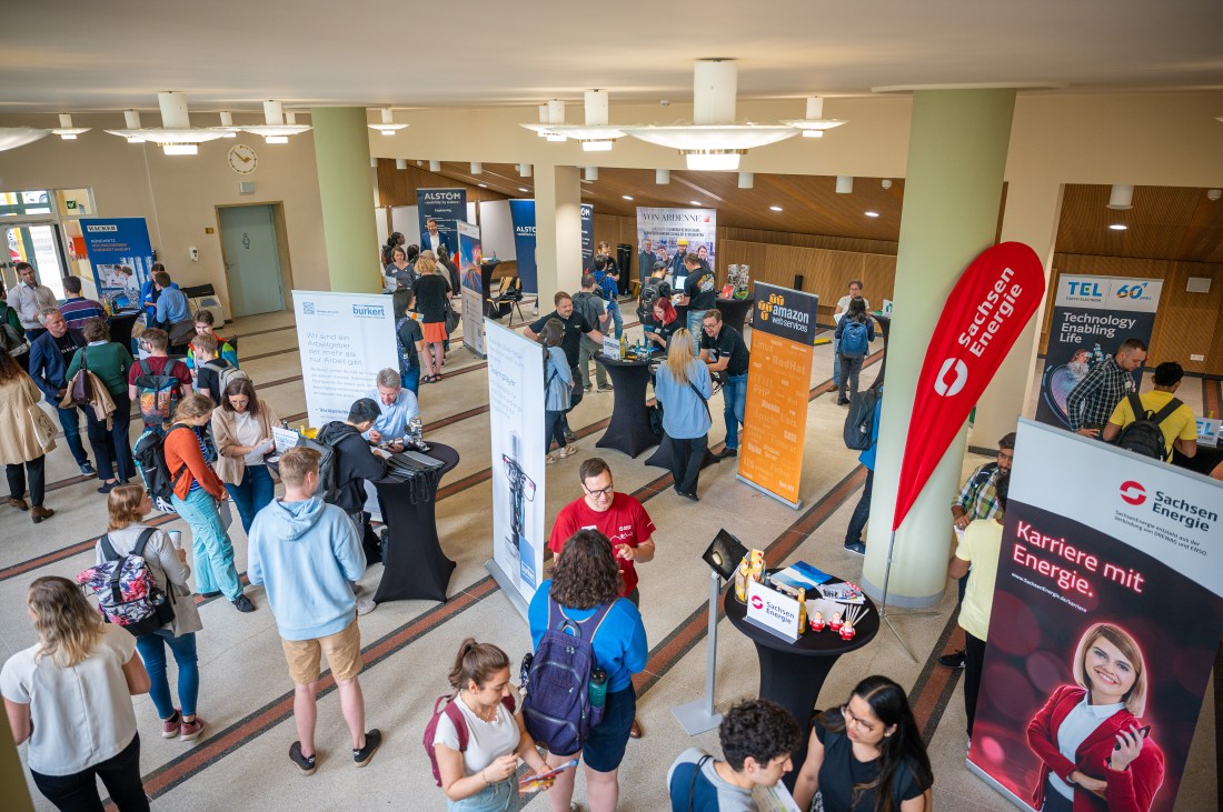 Was wurde geboten? Über 15 aufregende Unternehmen haben sich an Messeständen und in kurzen Pitches präsentiert – von globalen Halbleitergiganten über die Forschungs- und Entwicklungsabteilung des größten Onlinehändlers bis hin zu einem regionalen Anlagenhersteller für Algen-Zucht. Diese Firmen gewährten nicht nur Einblicke in ihre spannende Arbeitswelt, sondern standen auch bereit, eure Fragen zum Berufseinstieg zu beantworten und euch Tipps für erfolgreiche Bewerbungen zu geben. Zudem verloste Amazon am Ende drei Kindle E-Reader unter allen Teilnehmenden.